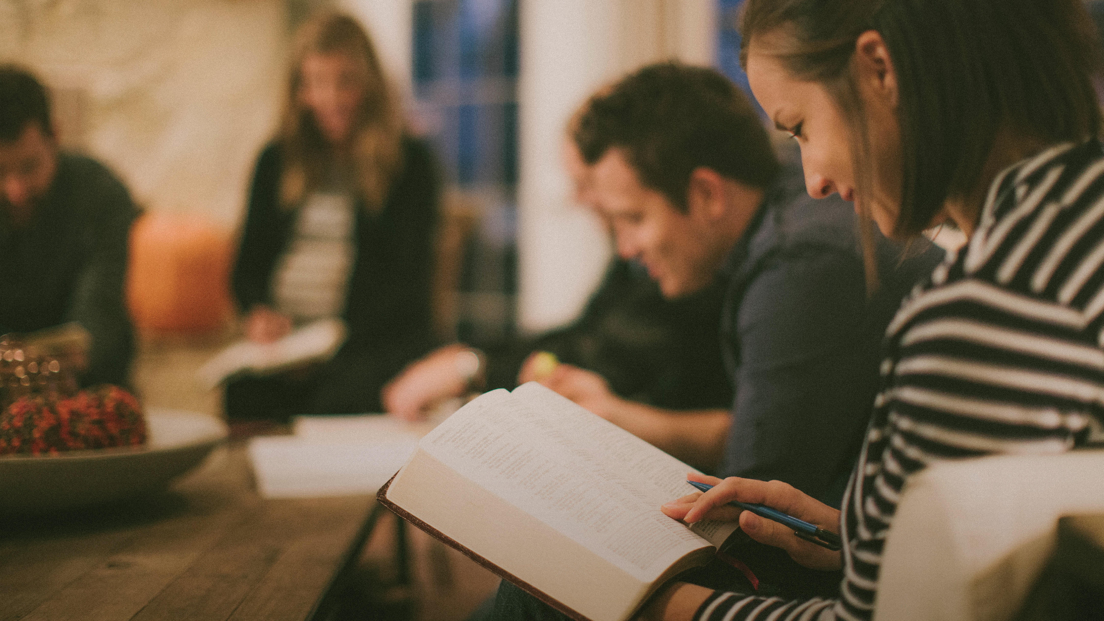 The Adult Bible Fellowship class meets together to study God's Word and to pray for one another.